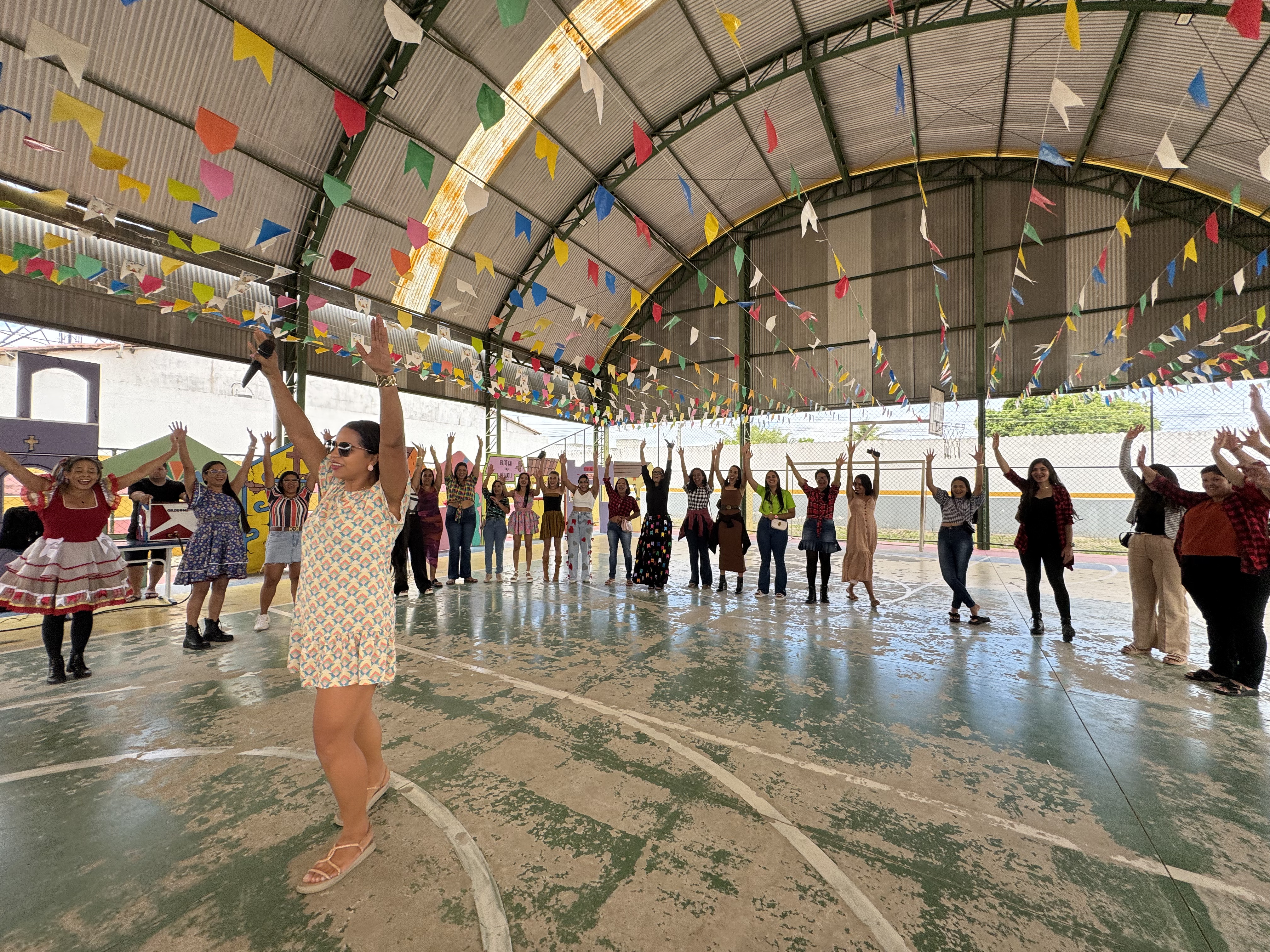 Com início às 9h, o evento celebrou o compromisso da rede municipal de ensino com a valorização da diversidade e o fortalecimento dos laços entre os profissionais da educação. O clima junino tomou conta do espaço, que foi decorado com bandeirolas, comidas típicas e muito forró.