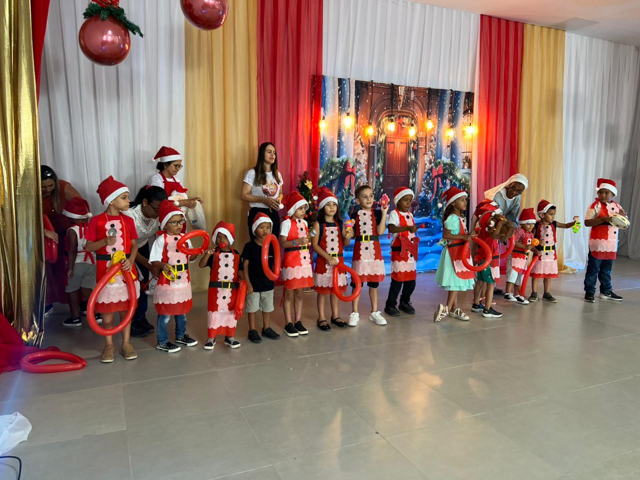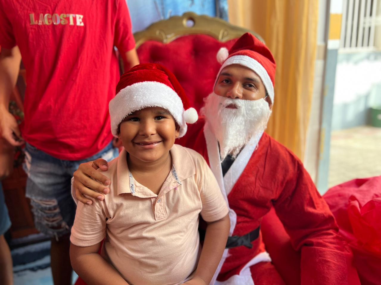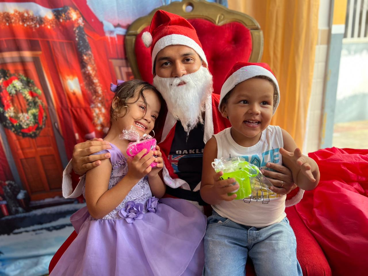 Um dos pontos altos do evento foi a chegada do Papai Noel, que interagiu com as crianças, distribuiu carinho e garantiu registros fotográficos, tornando a celebração ainda mais especial e inesquecível para os pequenos e suas famílias.